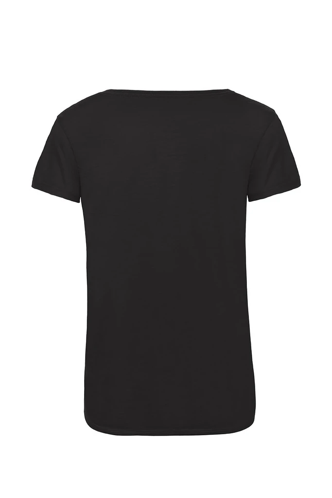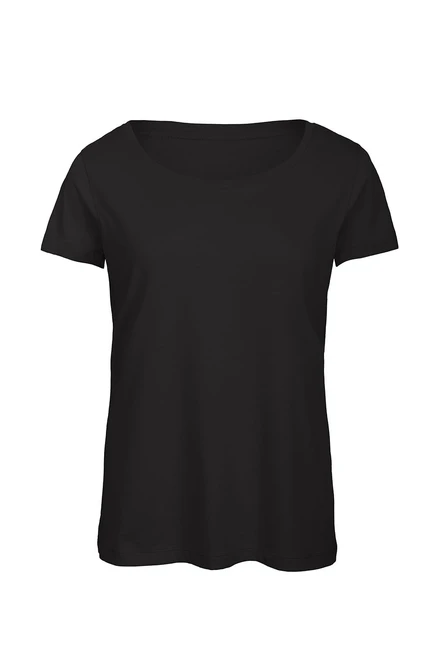 Hedvábně jemná "Triblend" single jersey, zpevňující páska u krku, tenký límec ze stejné tkaniny, dvojité prošití rukávů a dolního okraje, postranní švy, "B & C No Label" systém pro dokonalou změnu značky, velmi hladký a rovný povrch umožňuje jasný a ostrý tiskový výstup.