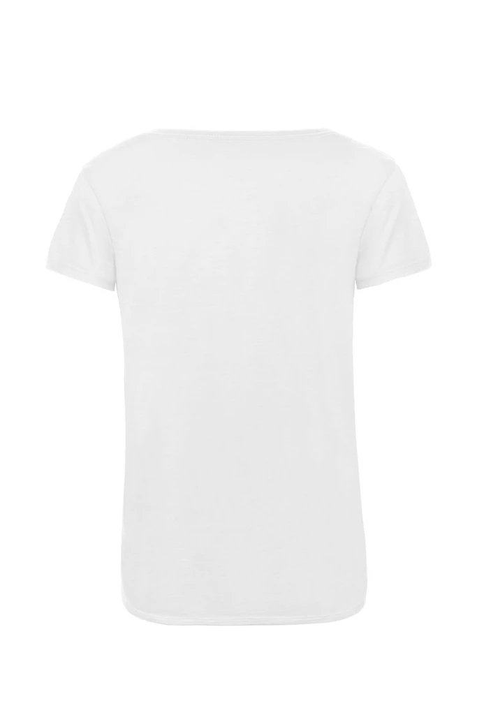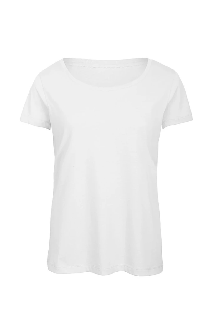 Hedvábně jemná "Triblend" single jersey, zpevňující páska u krku, tenký límec ze stejné tkaniny, dvojité prošití rukávů a dolního okraje, postranní švy, "B & C No Label" systém pro dokonalou změnu značky, velmi hladký a rovný povrch umožňuje jasný a ostrý tiskový výstup.