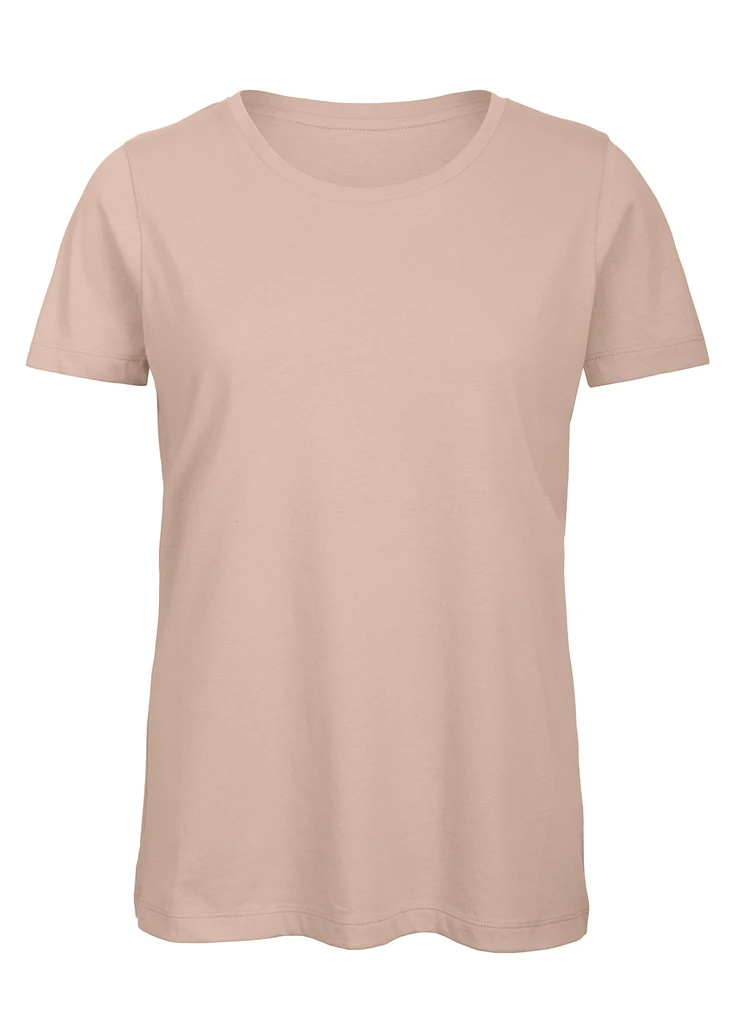 Single Jersey, tenký žebrovaný límec, zpevňující páska u krku, dvojité prošití rukávů a dolního okraje, postranní švy, "B & C No Label" systém pro dokonalou změnu značky, velmi hladký a rovný povrch umožňuje jasné a ostré výsledky tisku, testováno a schváleno pro všechny standardní tiskové techniky používané na bavlně.