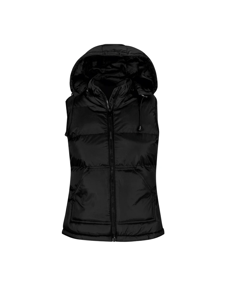 Zateplená, prošívaná (péřový vzhled), odepínací, nastavitelná kapuce, fleece na vnitřní straně límce, otevřené postranní kapsy, velký prostor bez švů pro dekoraci na zádech, přístup pro dekoraci zadní podšívkou, elastická šňůrka se zarážkami ve spodním lemu.