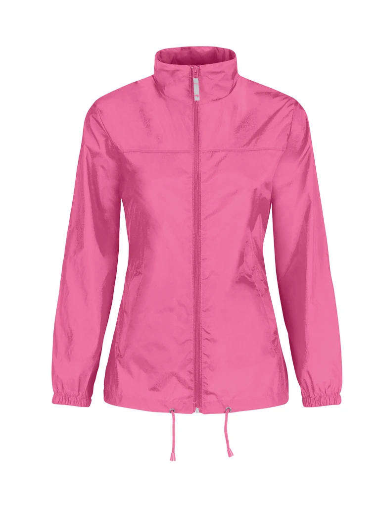 Voděodolný materiál, kapuce se šňůrkou skrytá v límci, propínací zip, 2 postranní kapsy, elastické manžety, šňůrka ve spodním lemu, bunda může být srolována a sbalena do pravé kapsy se zipem díky systému K-Way®.