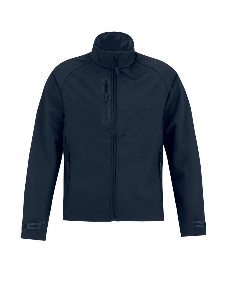 Prodyšná (do 5 000 g/m² na 24h) a voděodolná trojvrstvá látka softshell, límec s otvorem pro kabel od sluchátek, dlouhý zip s ochranou na bradu, kapsa s vývodem pro kabel od sluchátek na hrudi, dvě postranní kapsy na zip, vývod pro kabel od sluchátek také v pravé kapse, dvě vnitřní kapsy, manžety na suchý zip, spodní lem nastavitelný pomocí šňůrky se zarážkami, vypasovaný střih.