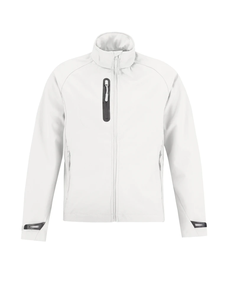 Prodyšná (do 5 000 g/m² na 24h) a voděodolná trojvrstvá látka softshell, límec s otvorem pro kabel od sluchátek, dlouhý zip s ochranou na bradu, kapsa s vývodem pro kabel od sluchátek na hrudi, dvě postranní kapsy na zip, vývod pro kabel od sluchátek také v pravé kapse, dvě vnitřní kapsy, manžety na suchý zip, spodní lem nastavitelný pomocí šňůrky se zarážkami, vypasovaný střih.