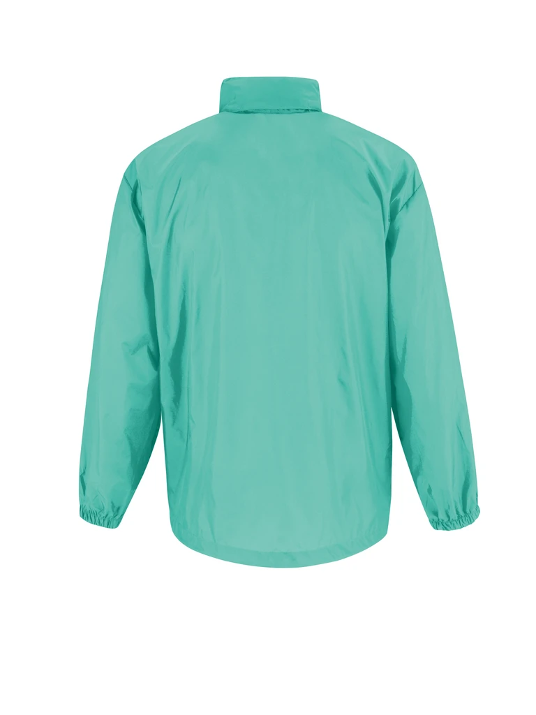 Voděodolný materiál, kapuce se šňůrkou skrytá v límci, propínací zip, 2 postranní kapsy, elastické manžety, šňůrka ve spodním lemu, bunda může být srolována a sbalena do pravé kapsy se zipem díky systému K-Way®.