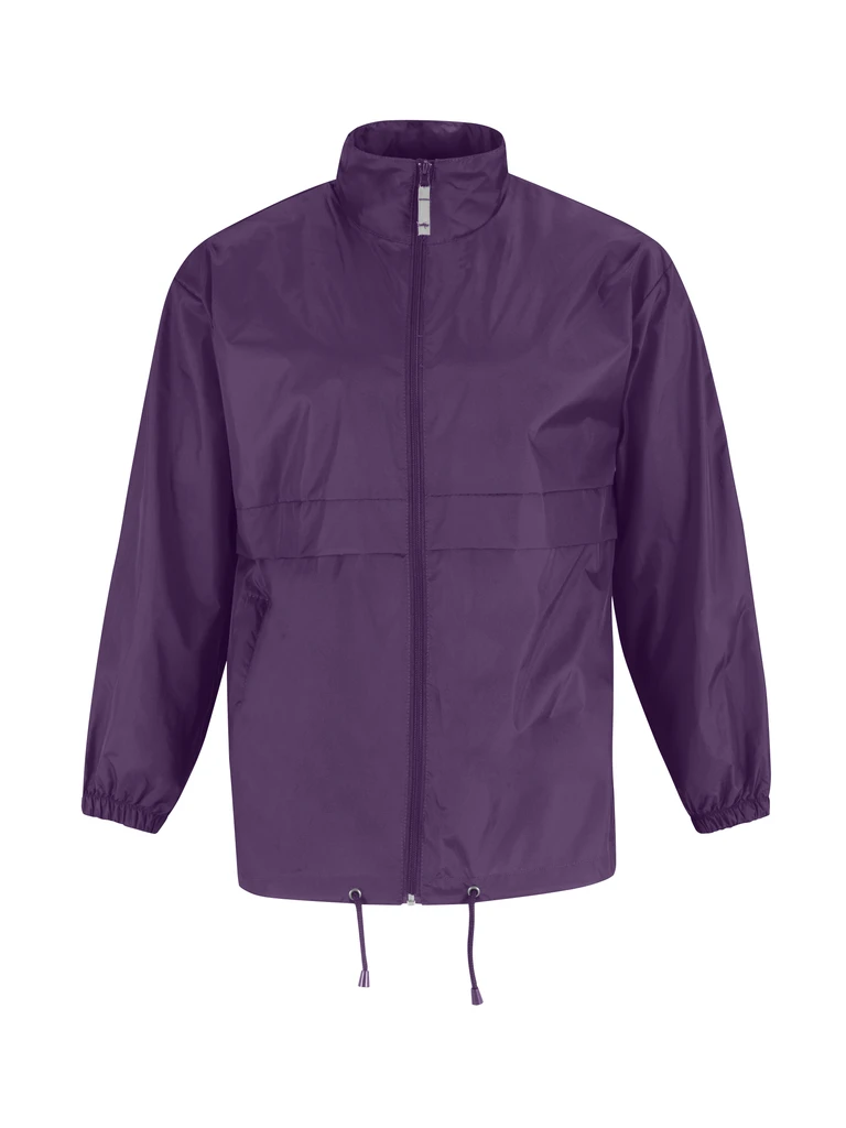 Voděodolný materiál, kapuce se šňůrkou skrytá v límci, propínací zip, 2 postranní kapsy, elastické manžety, šňůrka ve spodním lemu, bunda může být srolována a sbalena do pravé kapsy se zipem díky systému K-Way®.