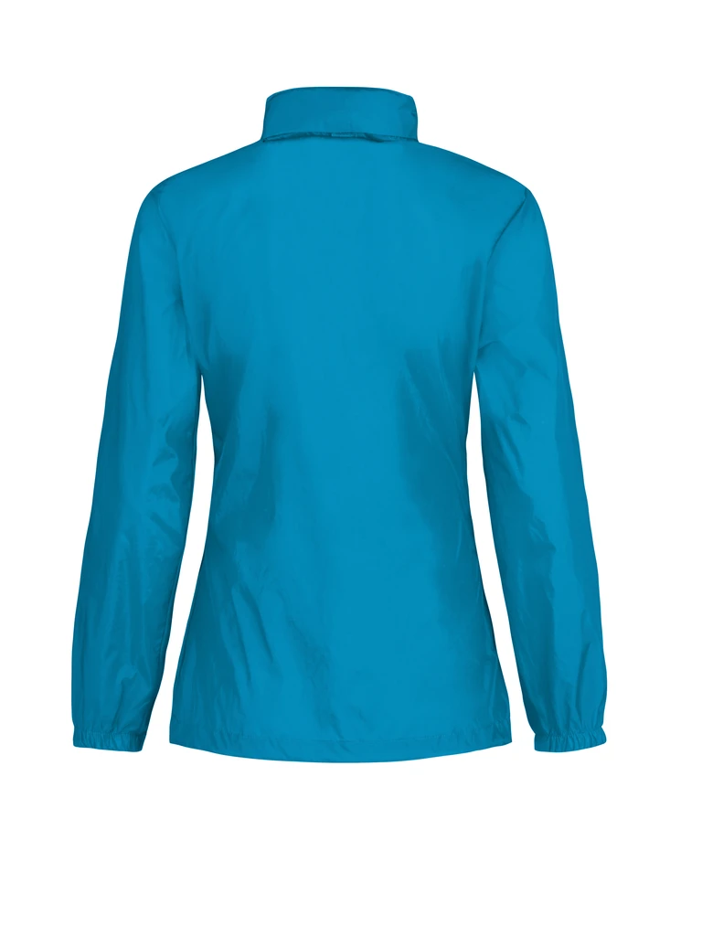 Voděodolný materiál, kapuce se šňůrkou skrytá v límci, propínací zip, 2 postranní kapsy, elastické manžety, šňůrka ve spodním lemu, bunda může být srolována a sbalena do pravé kapsy se zipem díky systému K-Way®.