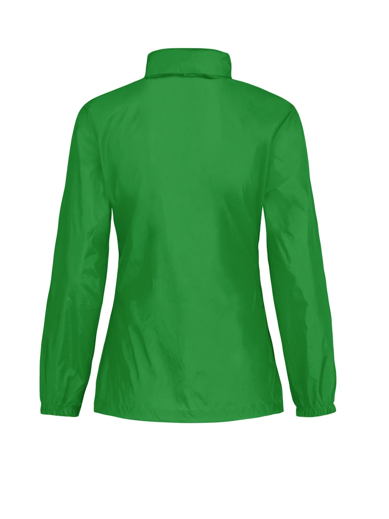 Voděodolný materiál, kapuce se šňůrkou skrytá v límci, propínací zip, 2 postranní kapsy, elastické manžety, šňůrka ve spodním lemu, bunda může být srolována a sbalena do pravé kapsy se zipem díky systému K-Way®.