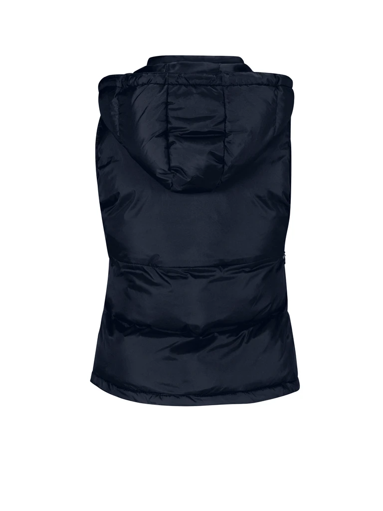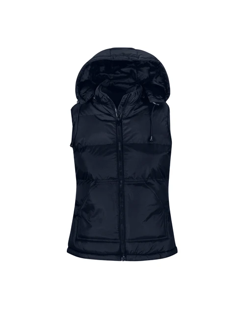 Zateplená, prošívaná (péřový vzhled), odepínací, nastavitelná kapuce, fleece na vnitřní straně límce, otevřené postranní kapsy, velký prostor bez švů pro dekoraci na zádech, přístup pro dekoraci zadní podšívkou, elastická šňůrka se zarážkami ve spodním lemu.