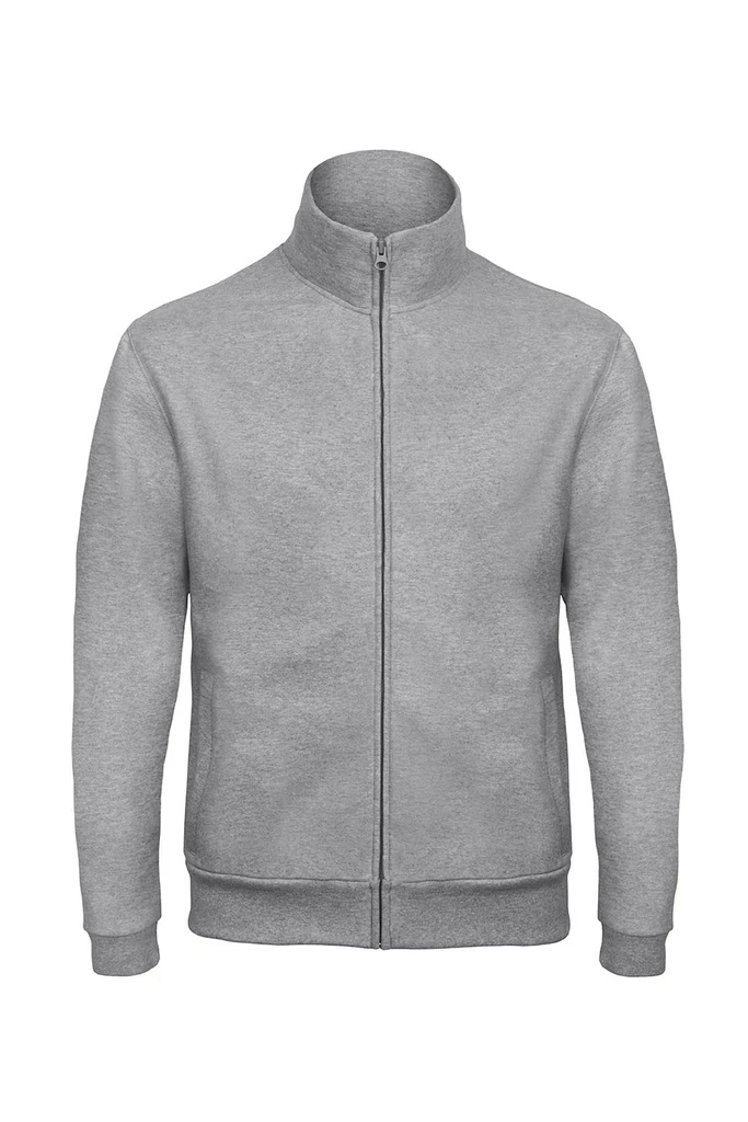 Broušený fleece uvnitř, vlastní tkanina - stojáček, zip po celé délce, 1x1 elastan žebrovaná manžeta a lem, rozšířené švy na průramcích, vsazené rukávy, kapsy, postranní švy, běžný klasický střih, "B & C No Label" řešení pro snadnou změnu značky, vhodné pro sítotisk, transferový tisk a výšivku.