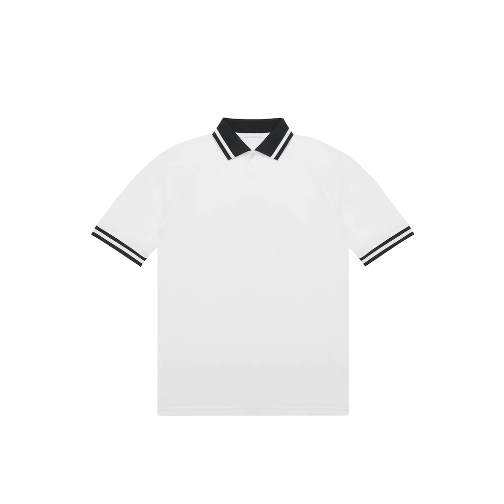 Skutečný genderově neutrální styl s bočními švy; prodyšná síťovina s dírkami a hedvábným omakem; kvalitní límec s výrazným kontrastním pruhem; krátká léga s jedním knoflíkem; boční rozparky.