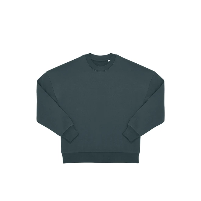 Pravý genderově neutrální styl s bočními švy; odolná tkanina 350 g/m² s pevným, výrazným omakem; Low Shrinkkage Fleece (LSF); 100% bavlněná lícová strana pro dokonalou potisknutelnost; spadlá ramena a oversized střih pro uvolněný styl; vysoce kvalitní manžety a spodní lem z žebrování 1x1.
