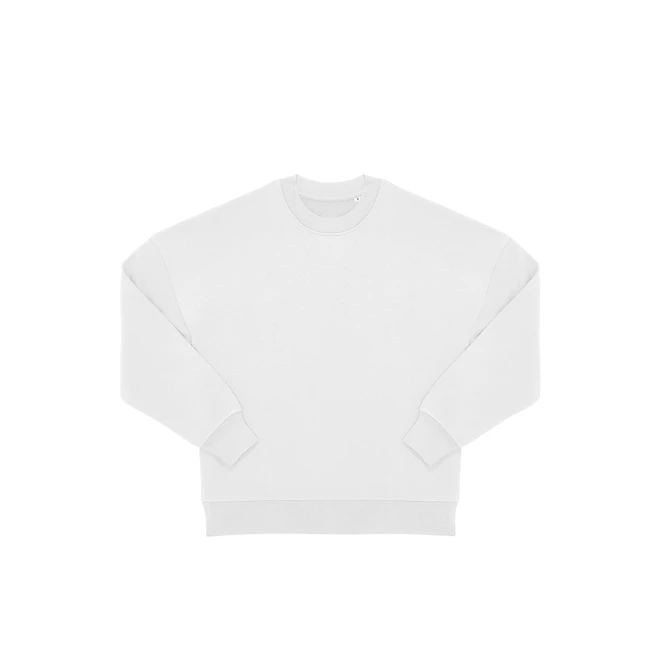 Pravý genderově neutrální styl s bočními švy; odolná tkanina 350 g/m² s pevným, výrazným omakem; Low Shrinkkage Fleece (LSF); 100% bavlněná lícová strana pro dokonalou potisknutelnost; spadlá ramena a oversized střih pro uvolněný styl; vysoce kvalitní manžety a spodní lem z žebrování 1x1.