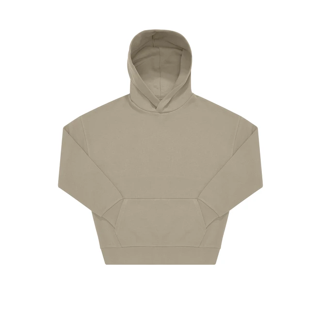 Pravý genderově neutrální styl s bočními švy; odolná tkanina 350 g/m² s pevným, výrazným omakem; Low Shrinkkage Fleece (LSF); 100% bavlněná lícová strana pro dokonalou potisknutelnost; spadlá ramena a oversized střih pro uvolněný styl; vysoce kvalitní manžety a spodní lem z žebrování 1x1; kapuce se stahováním bez šňůrek a podšívkou z vlastní tkaniny; klokaní kapsa promyšleně vytvořená pro pohodlné umístění rukou a bezpečné uložení.