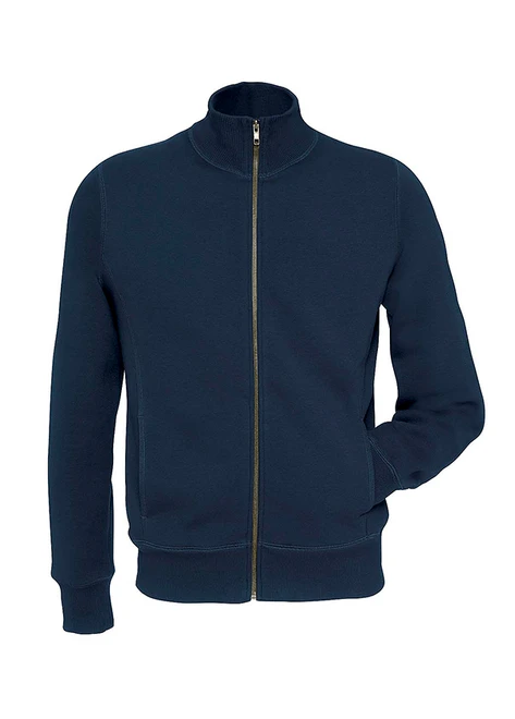 Dlouhý zip, vsazený límec, vsazené rukávy a manžety s ozdobným švem, ozdobný šev na předních kapsách a na zadním díle, žebrované náplety na manžetách a v pase.