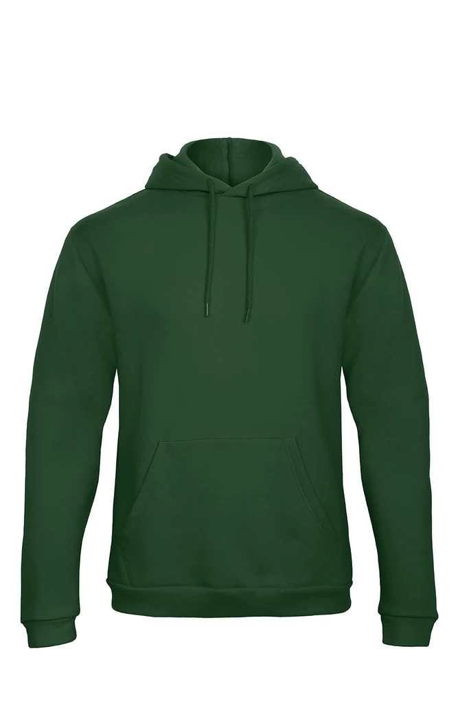 Broušený fleece uvnitř, dvoudílná kapuce se šňůrkou v stejné barvě, 1x1 elastan žebrovaná manžeta a lem, rozšířené švy na průramcích, vsazené rukávy, klokaní kapsa, postranní švy, klasický střih, "B & C No Label" řešení pro snadnou změnu značky, vhodné pro sítotisk, transferový tisk a výšivku.