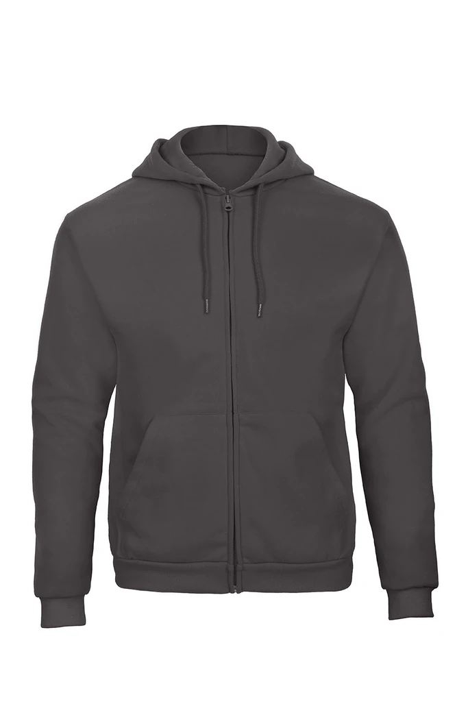 Broušený fleece uvnitř, dvoudílná kapuce se šňůrkou ve stejné barvě, zip po celé délce, 1x1 elastan žebrovaná manžeta a lem, rozšířené švy na průramcích, vsazené rukávy, klokaní kapsa, postranní švy, běžný klasický střih, "B & C No Label" řešení pro snadnou změnu značky, vhodné pro sítotisk, transferový tisk a výšivku.