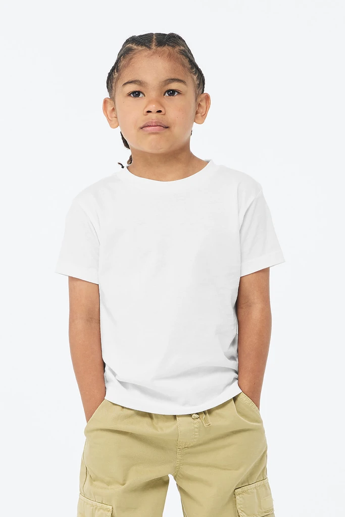 Dětské tričko s krátkým rukávem je identickou zmenšenou siluetou společníka, která odpovídá našemu nejprodávanějšímu stylu 3001. Tato nezbytnost pro mladé má kulatý výstřih, klasický střih s bočními švy a je dodávána v duhových 32 hravých barvách.