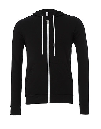 Neuvěřitelně měkká unisex mikina s kapucí na zip, zateplená z plyšové směsi poly-bavlny, se rychle stane nezbytností. Má volný střih, kapuci s bílými šňůrkami, zapínání na zip a žebrované manžety.