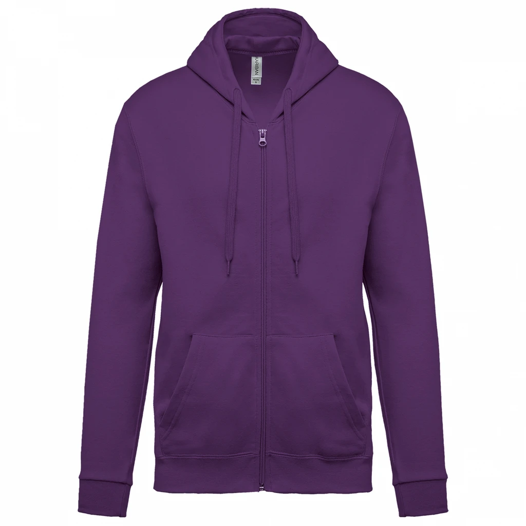 Broušený fleece, vsazené rukávy, trubicovitý střih, zapínání na zip, lemovaná kapuce se šňůrkou v odpovídající barvě, klokaní kapsy, žebrované manžety a spodní lem.