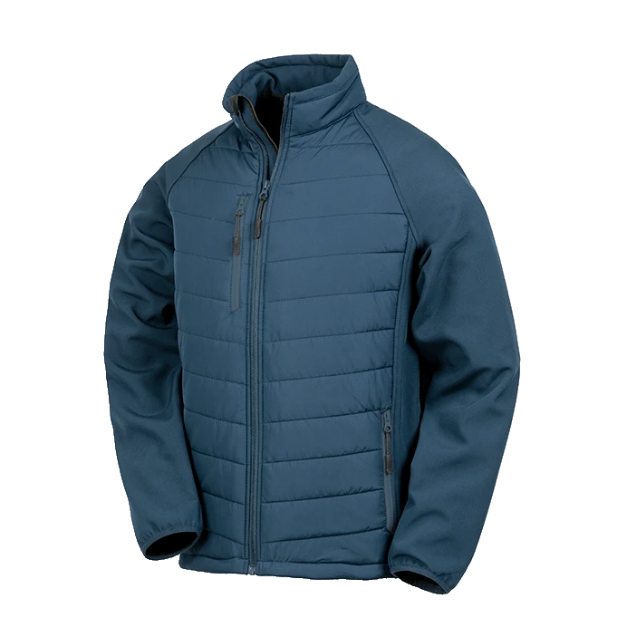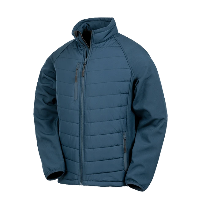 Materiál: Tělo: 100% Polyester; Výplň: 160 g/m², Polyester, recyklovaný (REPREVE ®); Podšívka: 100% Polyester; Super měkká, lehká a teplá, odolná proti vodě a větru, stojáček, polstrovaný límec, YKK zip s ochranou brady, náprsní a boční kapsy s kontrastními zipy, měkká manžeta, připraveno na značku (bez loga), přístup k dekoraci: levá část hrudi; Certifikáty: STANDARD 100 by OEKO-TEX®; Global Recycled Standard (GRS)