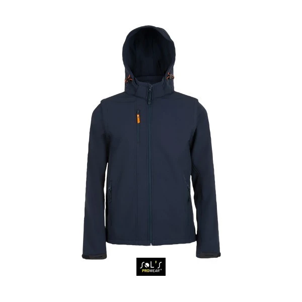 SOFT SHELL 340 - UNISEX - 3 vrstvy, vnější vrstva: 94% polyester - 6% elastan, podšívka: mikrofleece 100% polyester, membrána TPU - 8000 mm vodotěsná a prodyšná; Zapínání na zip, 3 kapsy na zip, odnímatelné rukávy a kapuce, utahovací šňůry kolem kapuce a spodní části
