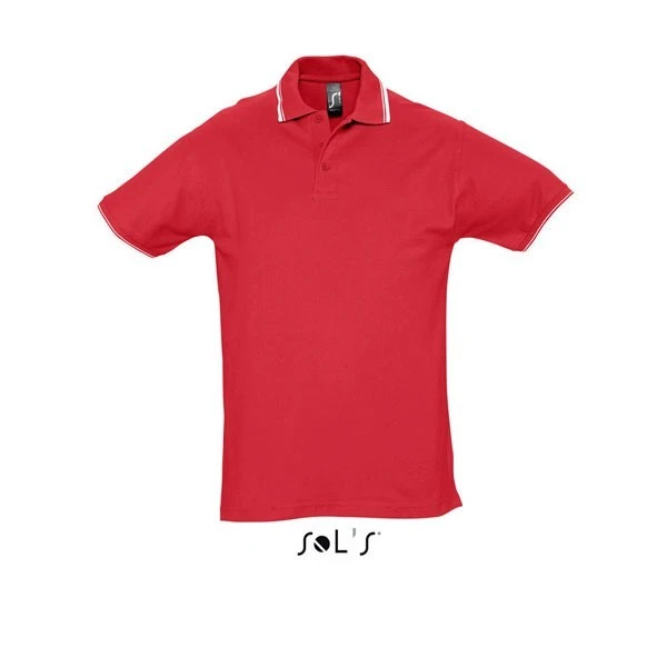 KVALITA: ÚPLET PIQUÉ 270, 100% počesaná prstencová bavlna; Žebrový límeček a okraj rukávů, na límečku zpevňující lemovka, krátké rukávy, kontrastní proužkovaný úplet u krku a rukávů, zapínání na 3 knoflíčky tón v tónu, spodní okraj s bočními prostřihy s kontrastním keprem, střiženo a sešito, rezervní knoflík v bočním švu; Certifikát: STANDARD 100 by OEKO-TEX®