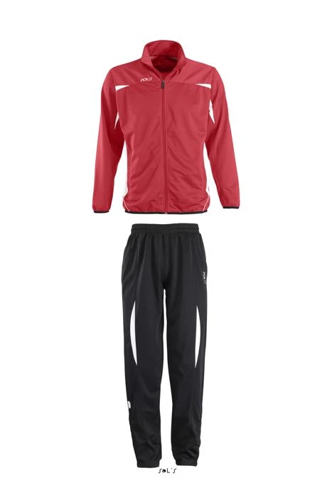 KVALITA: 100% lesklý interlock polyester; Bunda - pružné šikmé obroubení manžet a v pase, hlavní zapínání na zip, 2 kapsy na zip, velké kontrastní prodyšné látkové vložky na stranách a na rukávech, zajišťující kontrolu pocení, rukávy s pružným šikmým obroubením manžet, kontrastní vyšívané logo a značka; Tepláky - elastický pas se stahovací šňůrkou, 2 kapsy na zip, zúžená spodní část s klínkem ze síťoviny, Kontrastní vsadky ze síťoviny, kontrastní vyšívané logo a značka