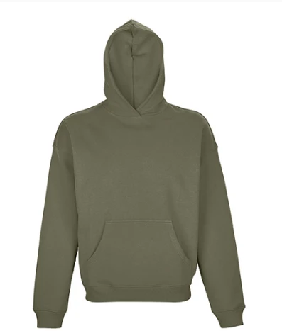Materiál: Francouzské froté 450 - 100% bavlna; Unisex oversized mikina s kapucí; organická bavlna; francouzský Terry; Vsazené rukávy, boční šev, překřížený výstřih, klokaní kapsy, kapuce podšitá mušlí, podlepený výstřih; Certifikát: STANDARD 100 by OEKO-TEX®