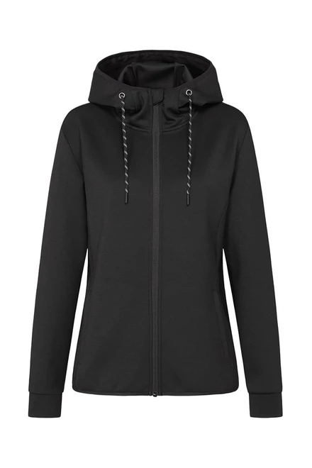Materiál: BLO: 94% polyester (24% recyklovaný), 6% elastan; ANH: 81% polyester (28 % recyklovaný), 13% viskóza, 6% elastan; Gramáž: 300 g/m²; Ekologická funkční tkanina, vyrobená z recyklovaných plastových lahví (8 na bundu), kovová očka na stahovací šňůrku (bez obsahu niklu), kapuce s elastickým vázáním a dvoubarevnou stahovací šňůrkou, 2 boční kapsy se skrytými zipy, zip s kovovým jezdcem (bez obsahu niklu), ozdobné ploché švy, elastická vazba na lemu, manžety z vlastní tkaniny, nákrčník, boční švy, prémiový tkaný velikostní štítek v límci, odtrhávací štítek péče v bočním švu, praní na 40°C; Certifikát: STANDARD 100 by OEKO-TEX®