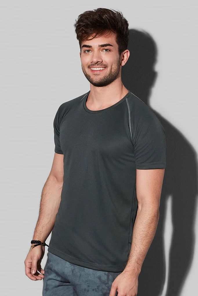 Materiál: 100% ACTIVE-DRY° polyester, hladká síťovina; Gramáž: 140 g/m²; Elastická tkanina, hladký povrch, rychleschnoucí, prodyšný, síťovavý materiál, raglánové rukávy pro vynikající volnost pohybu, kontrastní švy a kontrastní páska za krkem, dekorativní ploché švy, postranní švy, malý velikostní štítek v límci za krkem, etiketa s pracími symboly v bočním švu; Certifikát: STANDARD 100 by OEKO-TEX®