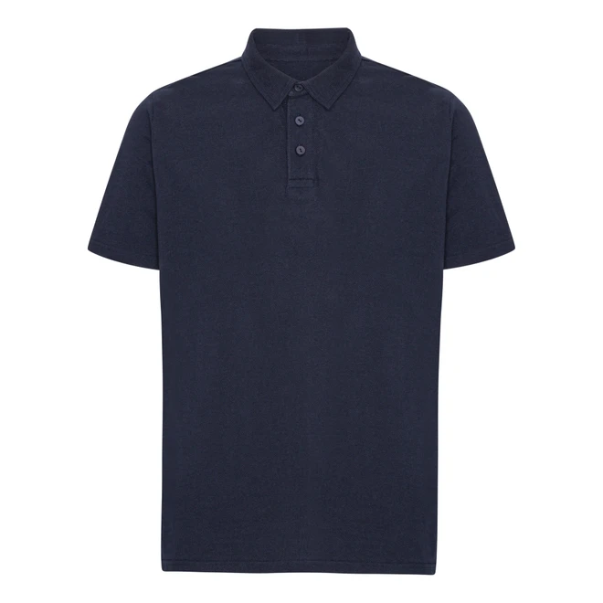 Klasická polokošile na míru s mírně vypasovanými krátkými rukávy a přední légou s knoflíky z lisované odpadní bavlny. Má plochý pletený límec a manžety rukávů, malý detail rozparku na bocích a dvojité prošití na rukávech a spodním lemu. Materiál je vyroben z piké úpletu z česané bavlny o gramáži 235 g/m².