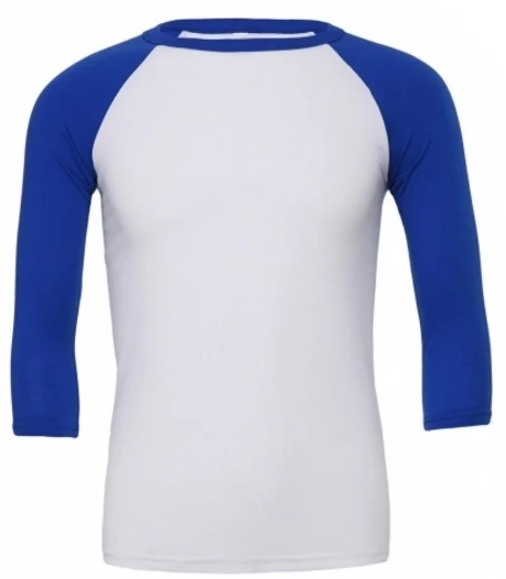 Žebrovaný náplet kolem výstřihu v kontrastní barvě, 3/4 raglánové rukávy v kontrastní barvě, boční švy, vypasované.