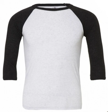 Žebrovaný náplet kolem výstřihu v kontrastní barvě, 3/4 raglánové rukávy v kontrastní barvě, boční švy, vypasované.