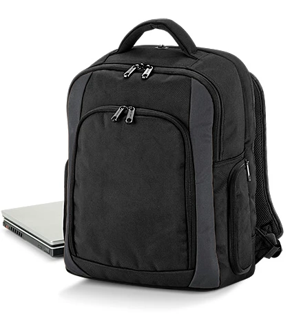 Polstrované nastavitelné ramenní popruhy, kompatibilní s notebookem až do 15,6", polstrovaná přihrádka na notebook, kapsa na média a port pro sluchátka, přední kapsa na organizér, držák na láhev s vodou, boční kapsy na zip, držadlo, rozměry: 34 x 45 x 21 cm; Objem: 23 litrů