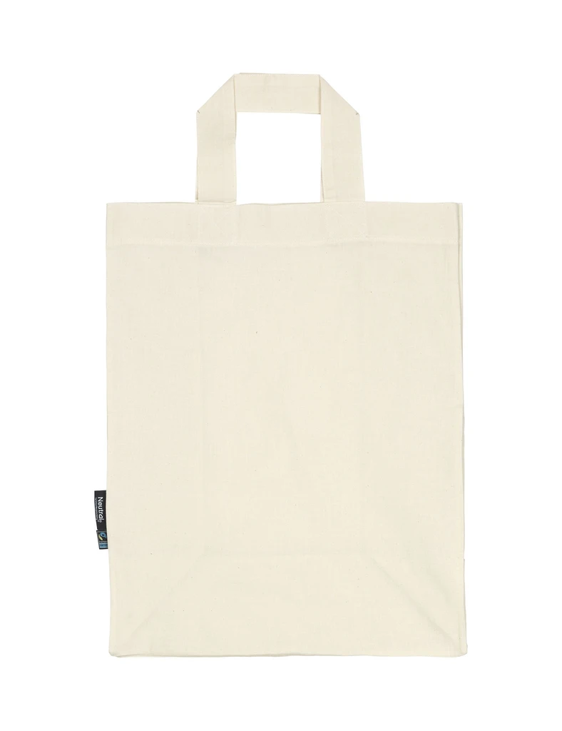 Materiál: 100% biobavlna "Fairtrade Cotton", keprová tkanina; Gramáž: 210 g/m²; Silnější pevná bavlna. Krátká ucha (36 cm), rozměry: 35 x 24 cm. Zpevněné strany a dno tašky. Zesílení v zatížených bodech. Značky Neutral® a Fairtrade na straně; Certifikáty: OEKO-TEX® STANDARD 100, 100% CERTIFIED ORGANIC COTTON, FAIR WEAR, EU ECOLABEL, SA8000, NEUTRAL® RESPONSIBILITY
