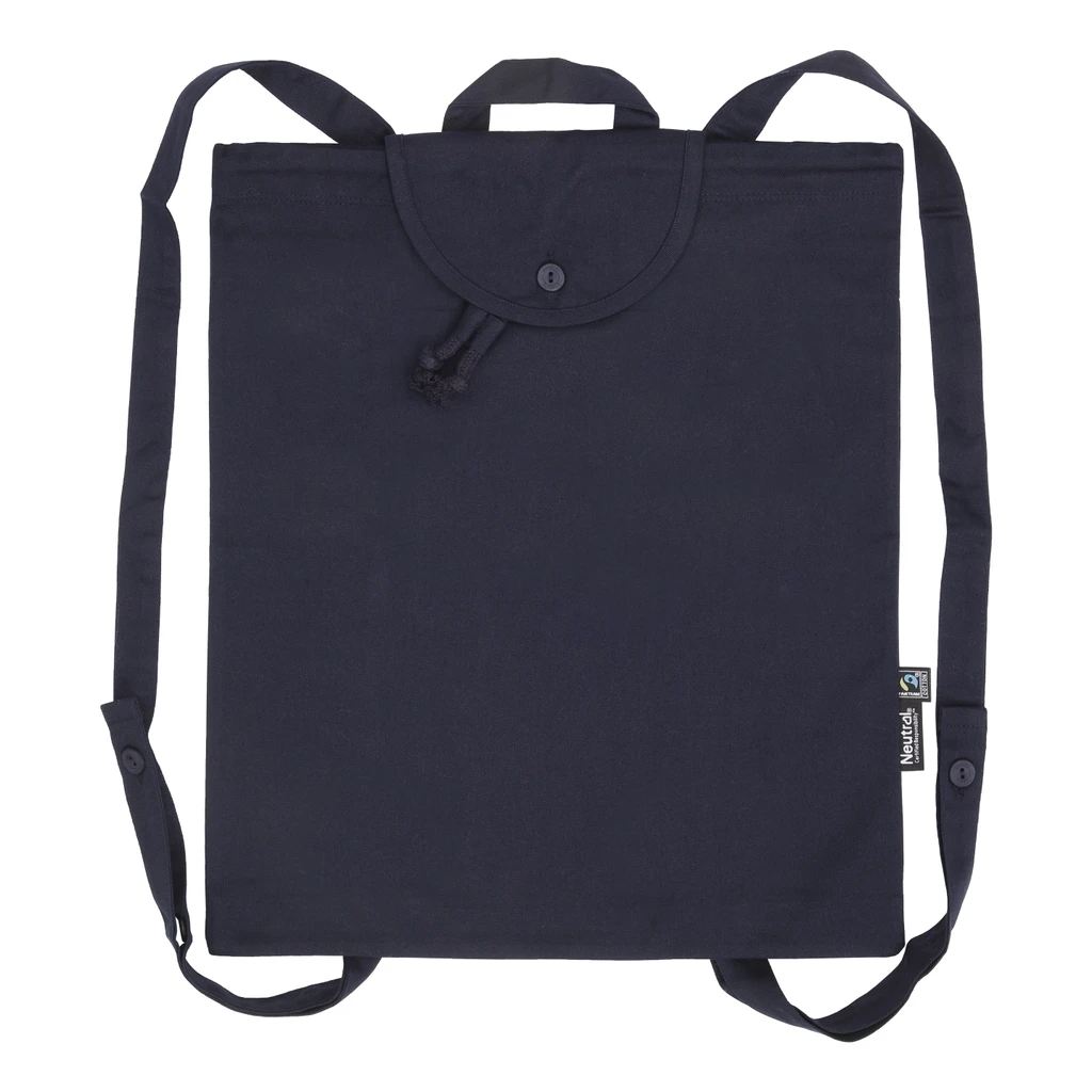Batoh z keprové tkaniny s bavlněnými knoflíky na popruzích. Doplněn štítky Neutral® a Fairtrade na boku. K dispozici v šesti barvách.