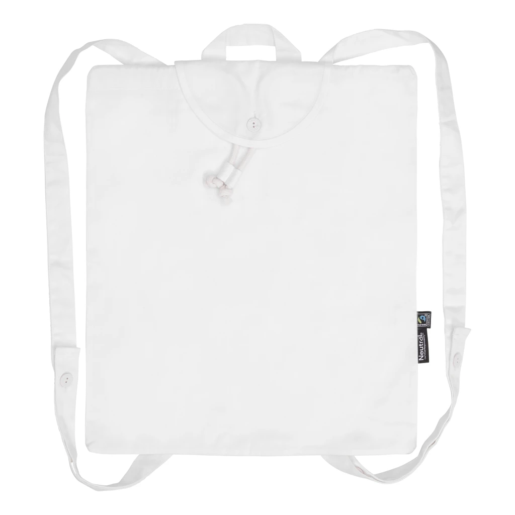 Batoh z keprové tkaniny s bavlněnými knoflíky na popruzích. Doplněn štítky Neutral® a Fairtrade na boku. K dispozici v šesti barvách.