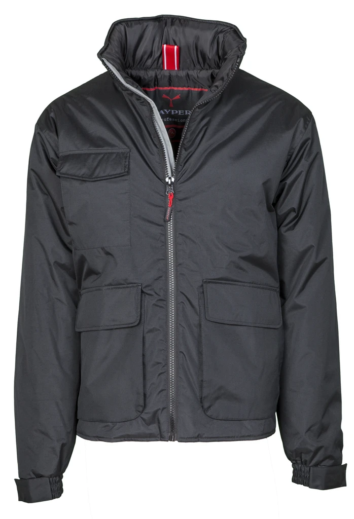 8 mm široký plastový zip, kovový jezdec, kapuce schovaná v límci, elastické manžety, 2 prostorné kapsy se speciálním zavíracím systémem, 2 boční kapsy, kapsa na hrudi na mobilní telefon, vatová vycpávka