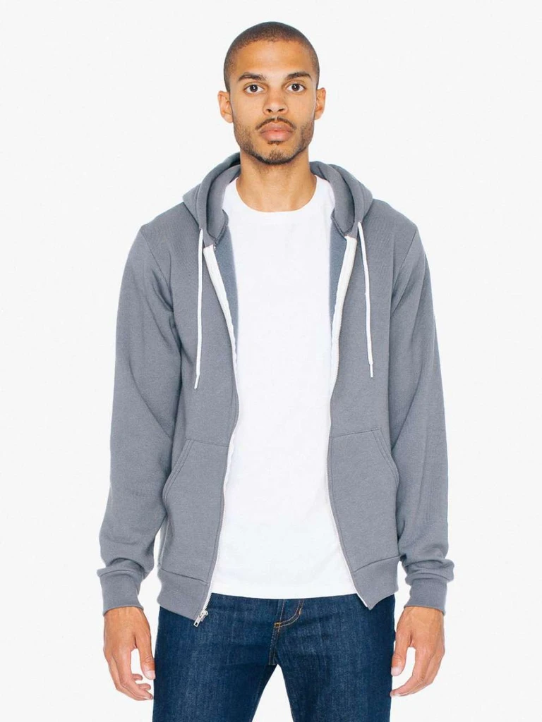 Kapuce s bílými šňůrkami, zip po celé délce, kovový jezdec zipu, boční švy, 1x1 žebrování na manžetách a spodním lemu, klokaní kapsa, saténová cedulka.