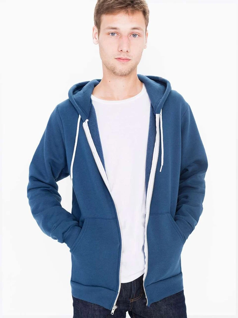Kapuce s bílými šňůrkami, zip po celé délce, kovový jezdec zipu, boční švy, 1x1 žebrování na manžetách a spodním lemu, klokaní kapsa, saténová cedulka.