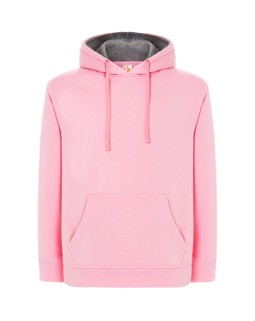 Kontrastní kapuce, barvená šňůrka v kapuci, klokaní kapsa, žebrované manžety a spodní lem, vhodná pro sítotisk, transfer i vyšívání.