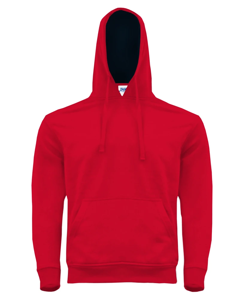 Kontrastní kapuce, barvená šňůrka v kapuci, klokaní kapsa, žebrované manžety a spodní lem, vhodná pro sítotisk, transfer i vyšívání.