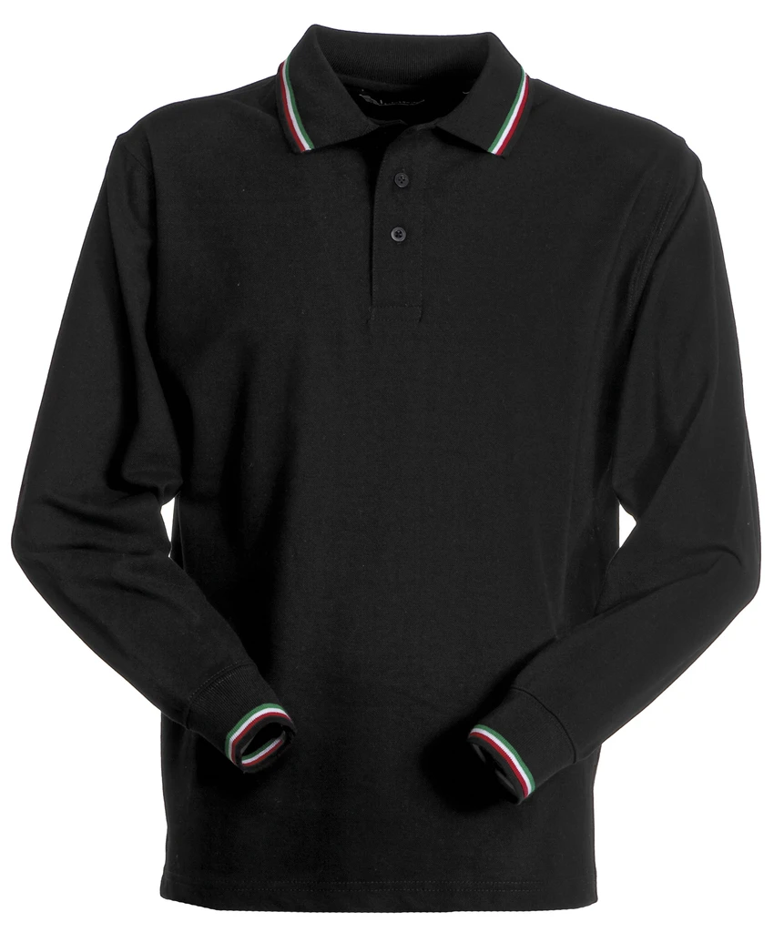 Dlouhý rukáv, léga s 3 bílými knoflíky, kontrastní lemování na límci a rukávu (motiv italské vlajky), žebrování na límci a manžetách, boční rozparky s vyztuženými švy, boční výztužná páska, elastické švy, výztužná páska za krkem