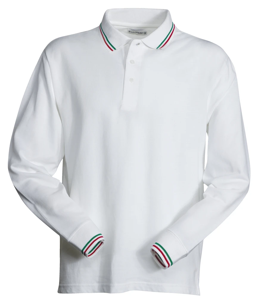 Dlouhý rukáv, léga s 3 bílými knoflíky, kontrastní lemování na límci a rukávu (motiv italské vlajky), žebrování na límci a manžetách, boční rozparky s vyztuženými švy, boční výztužná páska, elastické švy, výztužná páska za krkem