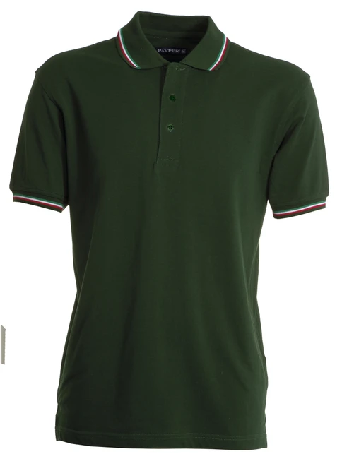 Krátký rukáv, léga s 3 bílými knoflíky, kontrastní lemování na límci a rukávu (motiv italské vlajky), žebrování na límci a manžetách, boční rozparky s vyztuženými švy, boční výztužná páska, elastické švy, výztužná páska za krkem