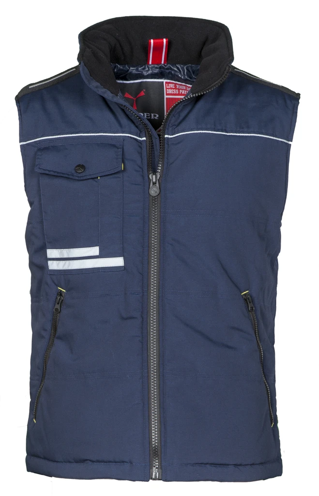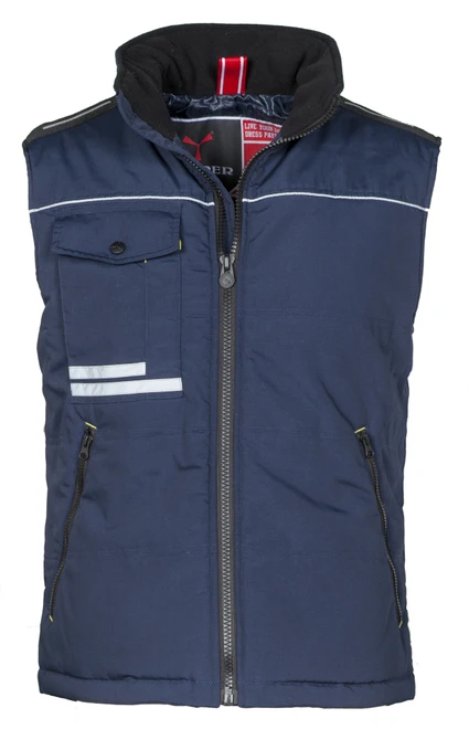 Černý 8 mm široký plastový zip po celé délce, kovový jezdec, 2 prostorné vnější kapsy na zip, prostorná multifunkční kapsa na hrudi na mobilní telefon, vnitřní kapsa, reflexní proužky na hrudi, vatová vycpávka, fleecová podšívka na límci