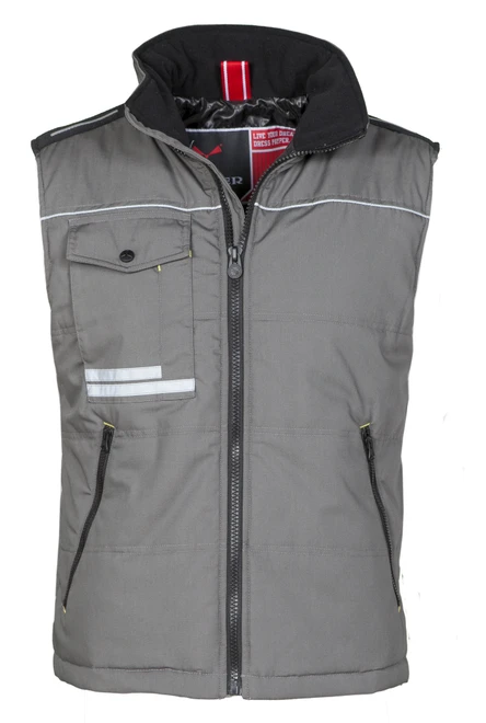 Černý 8 mm široký plastový zip po celé délce, kovový jezdec, 2 prostorné vnější kapsy na zip, prostorná multifunkční kapsa na hrudi na mobilní telefon, vnitřní kapsa, reflexní proužky na hrudi, vatová vycpávka, fleecová podšívka na límci