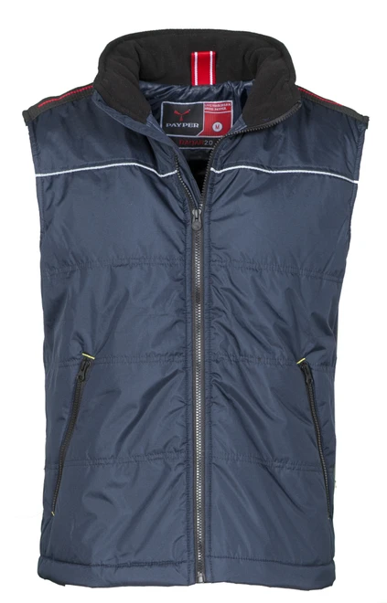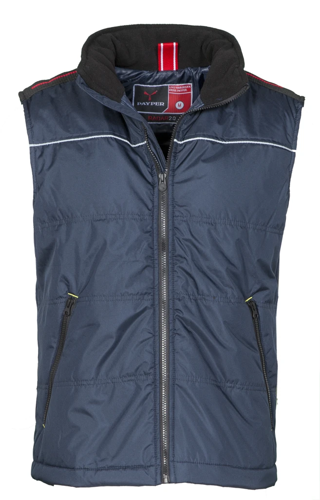Po celé délce černý 5 mm široký plastový zip, kovový jezdec, 2 prostorné vnější kapsy na zip, vnitřní kapsa, reflexní lemování na hrudi a zádech, vatová vycpávka, podšívka na límci z fleecu