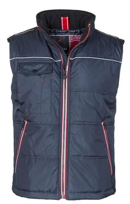 Po celé délce kontrastní 8 mm široký plastový zip, kovový jezdec, 2 prostorné vnější kapsy na zip, prostorná kapsa na hrudi na mobilní telefon, vnitřní kapsa, reflexní lemování na hrudi a zádech, vatová vycpávka, podšívka na límci z fleecu