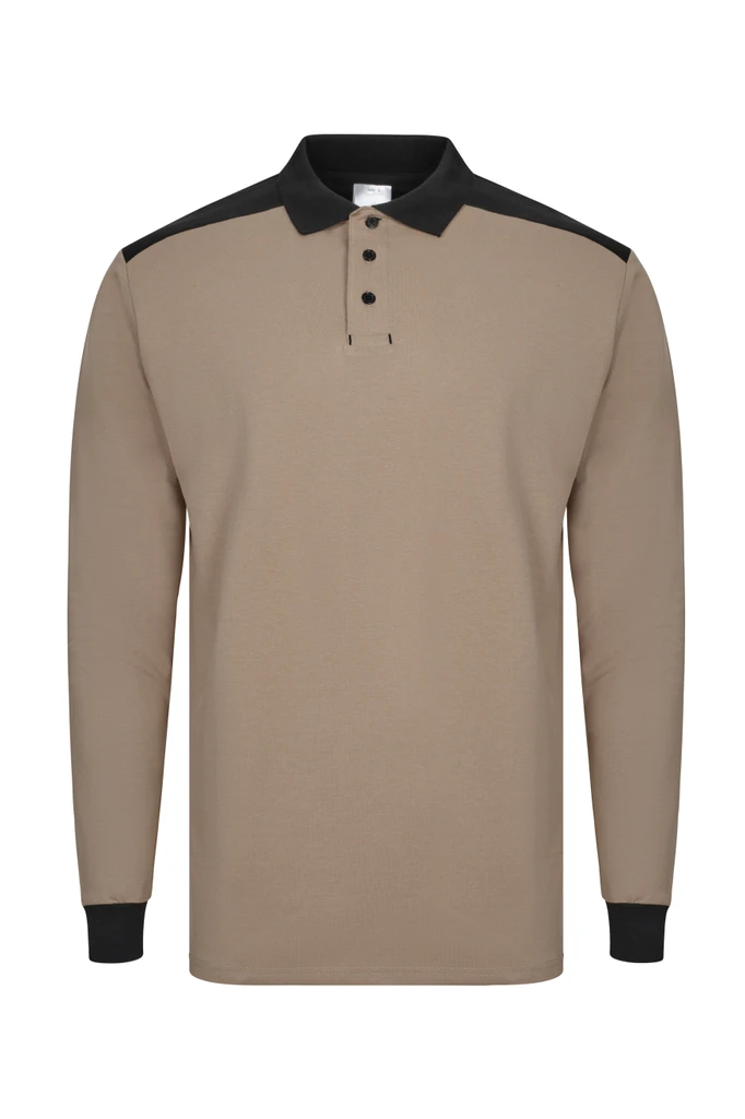 LONG SLEEVE TWO-TONE STRETCH POLO SHIRT